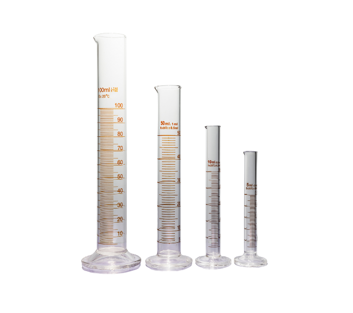 Graduated cylinders are used to measure liquid volumes and are more accurate than flasks or beakers. They are tall, narrow, and cylindrical vessels marked with graduations. Made of glass or plastic, larger graduated cylinders are typically plastic, which is lightweight and less likely to break than glass. Graduated cylinders have a solid base or foot for stability and a spout to aid in pouring. Because they can be somewhat unstable, some glass cylinders feature a plastic bumper or ring to help prevent breakage if tipped over. Mixing graduate...